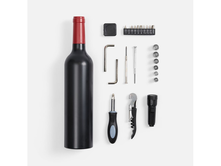 Можно и не догадаться, что внутри скрываются стандартные инструменты — главные спасатели в разных бытовых ситуациях. И конечно, в комплекте Top Shelf было не обойтись без штопора: на случай, если после сборки мебели захочется отметить успех или во время работы будет необходимо поднять себе настроение.Состав набора: