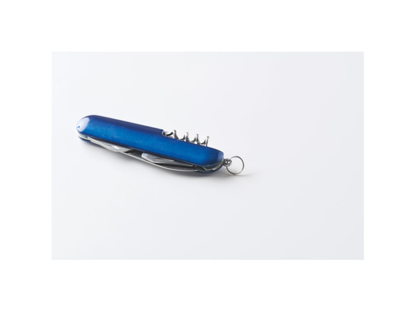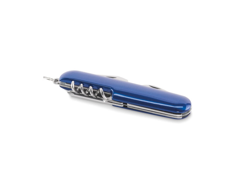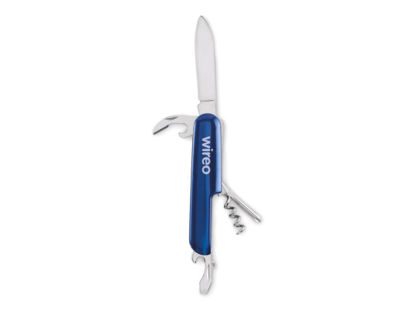 Многофункциональный перочинный нож из переработанного алюминия. 5 функций: нож, открывалка для бутылок, отвертка, штопор и консервный нож.
