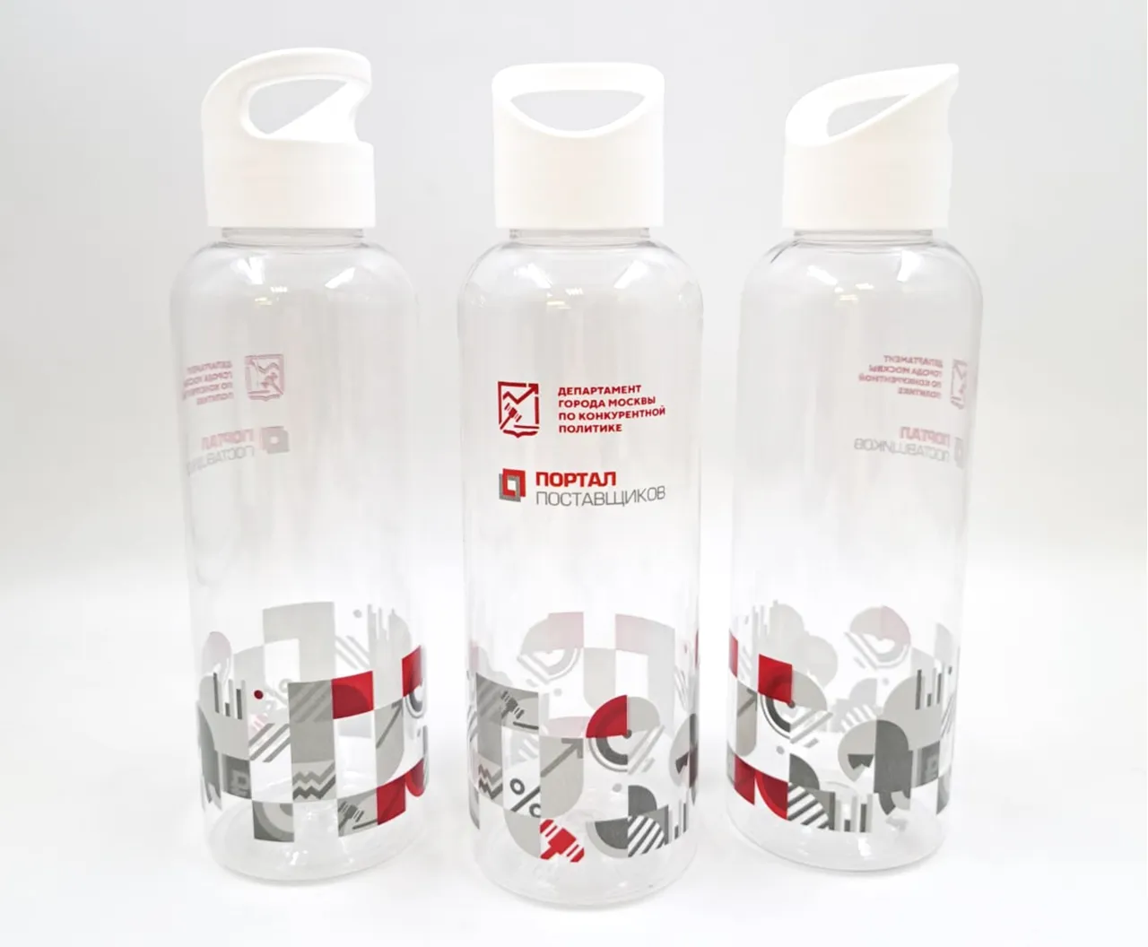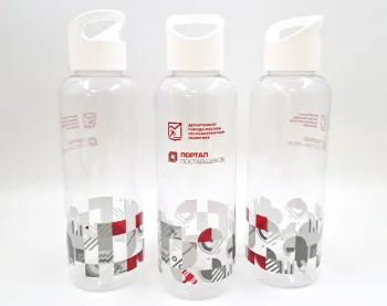 Легкая бутылка для спорта с откидной крышкой и силиконовой петлей. Вид нанесения: лазерная гравировка