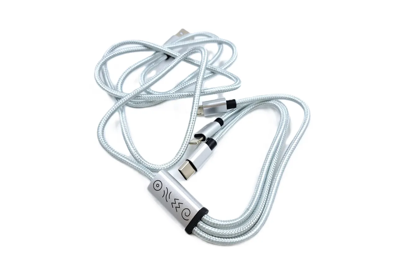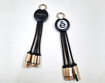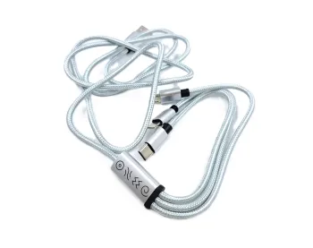 Прочный кабель в текстильной оплетке с 3 разъемами. Вид нанесения: лазерная гравировка