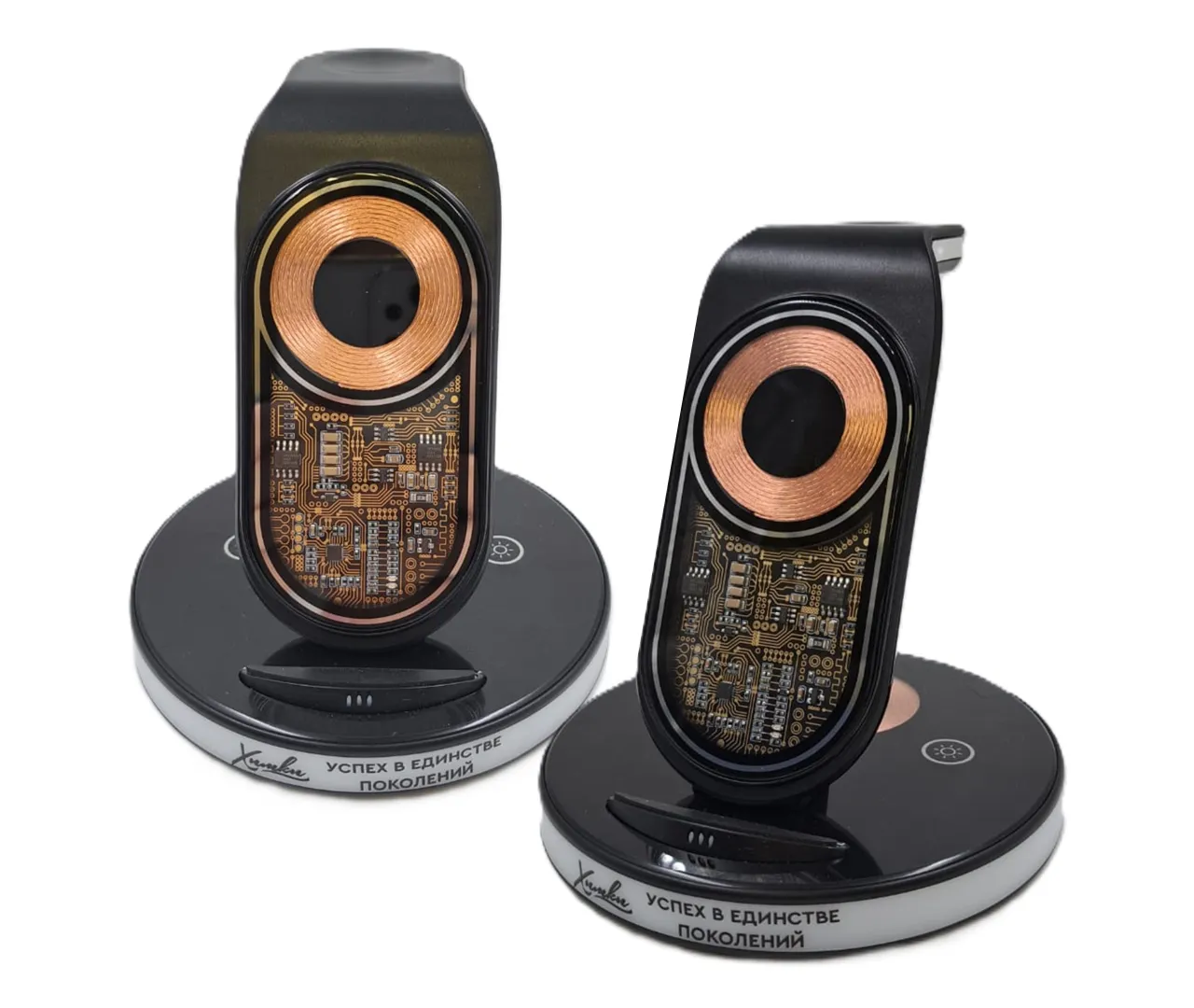 Беспроводная (15W) зарядная станция с прозрачным корпусом и подсветкой. Вид нанесения: УФ-ДТФ печать