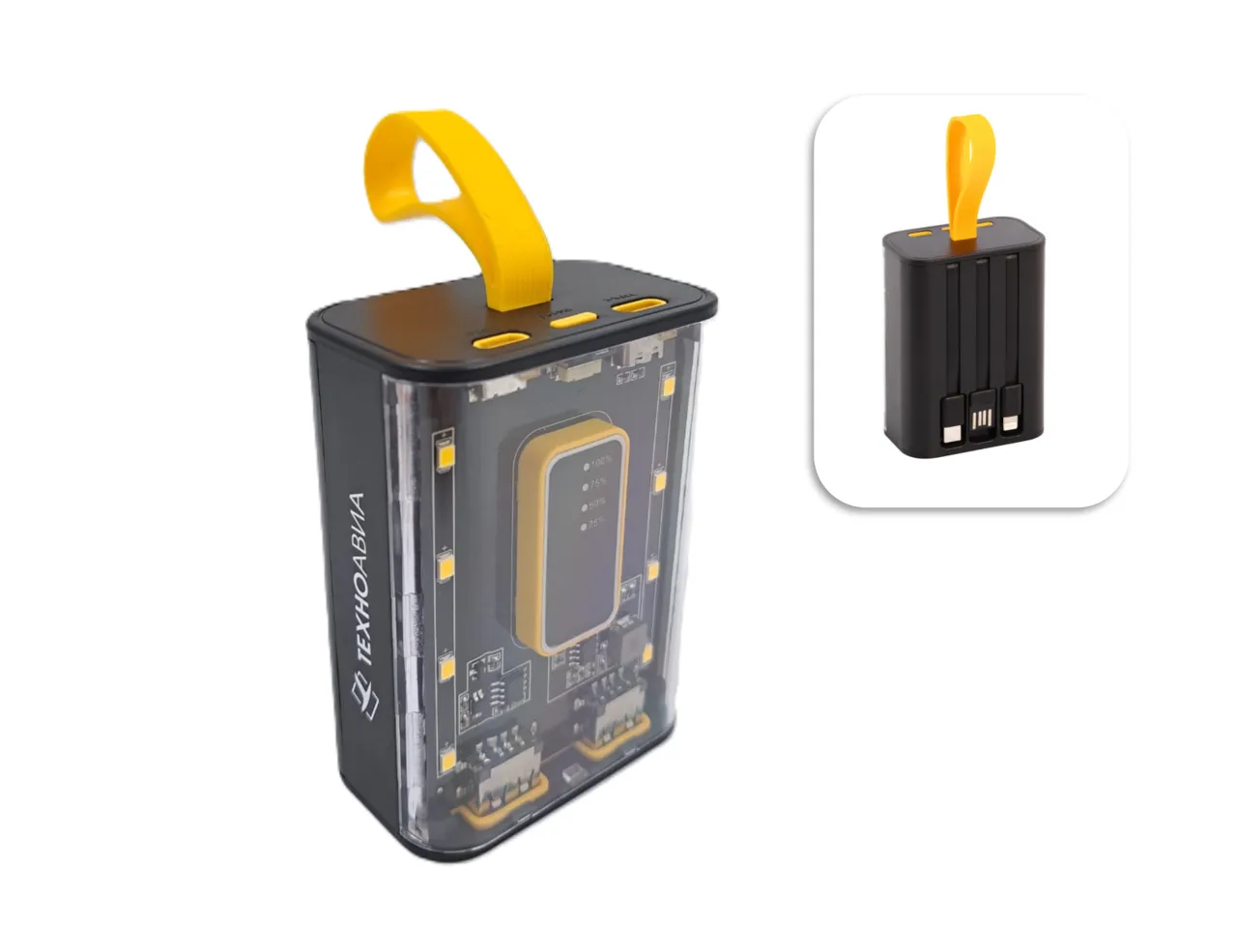 Зарядное устройство 9000 mAh с LED-подсветкой, встроенными кабелями Type-C/Lightning/USB.Вид нанесения: уф-печать