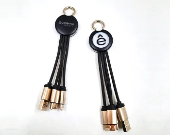Прочный кабель в текстильной оплетке с 3 разъемами, в футляре