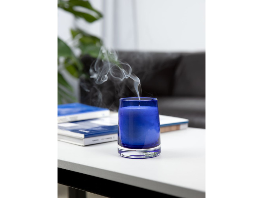 Ароматическая свеча Fragnola в изящном подсвечнике из цветного стекла идеально подходит для создания уютной атмосферы в доме и станет отличным дополнением к любому интерьеру.
