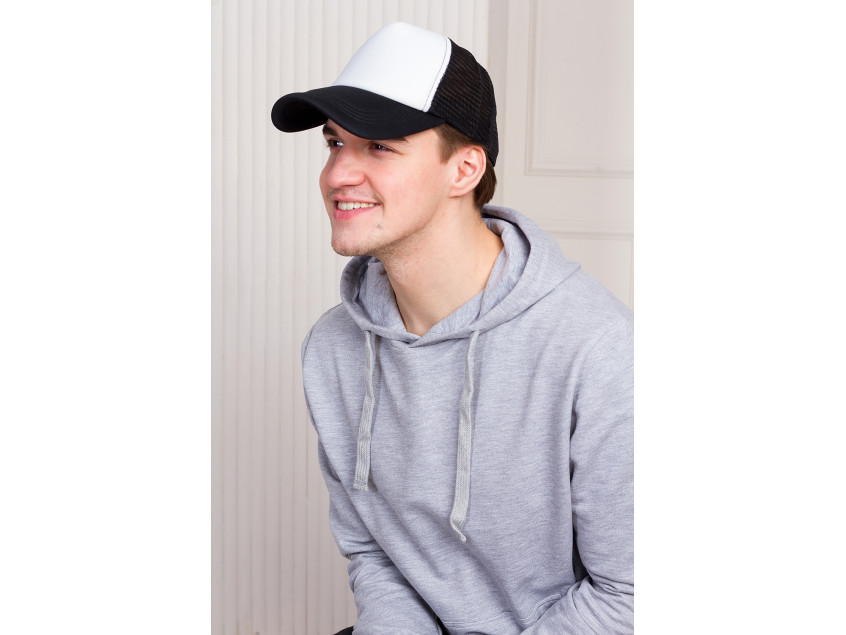 Бейсболка с сеткой без лобового шва с жёстким изогнутым козырьком, плотность прилегания регулирует надежная пластиковая застежка. Передний клин и козырек усилены поролоном, благодаря чему модель имеет узнаваемый характерный силуэт.
