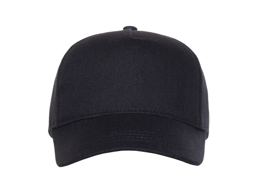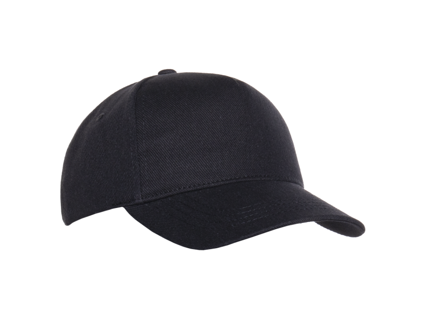 Бейсболка-пятиклинка без лобового шва с изогнутым жестким козырьком и регулируемой металлической застежкой.