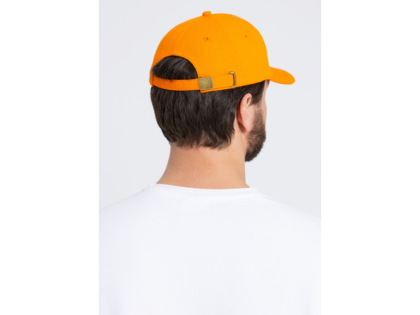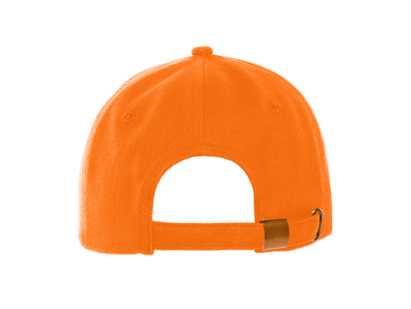 Бейсболка-пятиклинка без лобового шва с изогнутым жестким козырьком и регулируемой металлической застежкой.