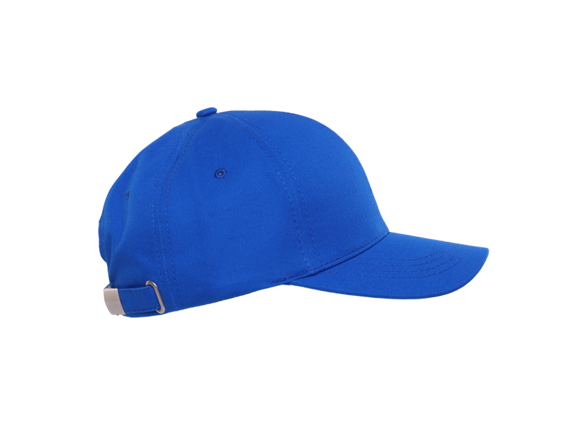 Бейсболка-шестиклинка с классическим изогнутым козырьком и застежкой на ленту с металлическим замком в тон основному цвету изделия.