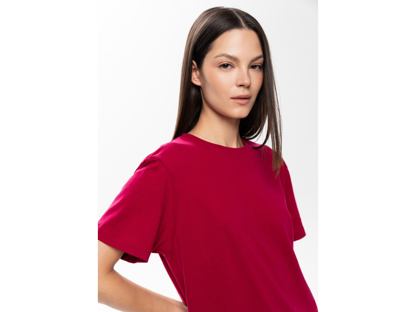 Классическая футболка прямого кроя с округлым воротом и втачным рукавом. Изделие не имеет бокового шва, что открывает новые возможности для реализации ваших креативных решений.
