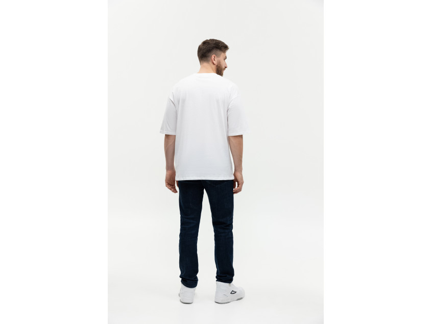 Свободная футболка силуэта-оверсайз с округлым воротом и спущенной линией плеча. Универсальная модель идеально впишется как в мужской, так и в женский гардероб.