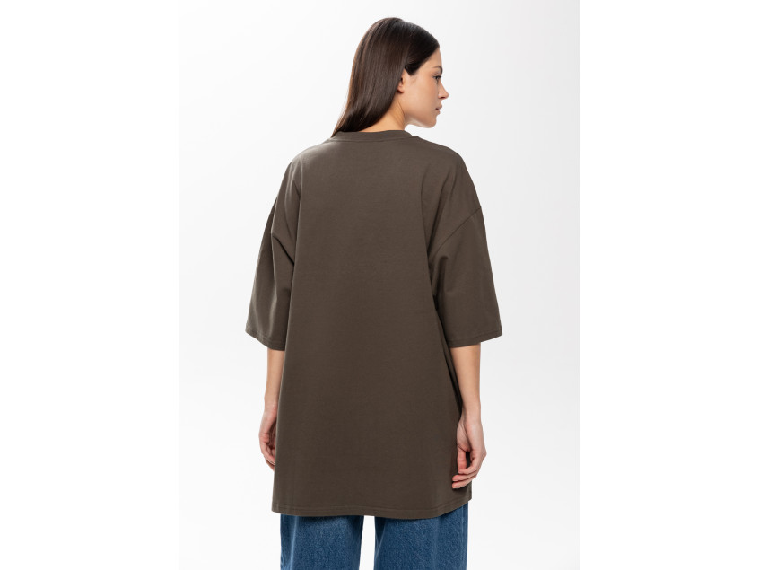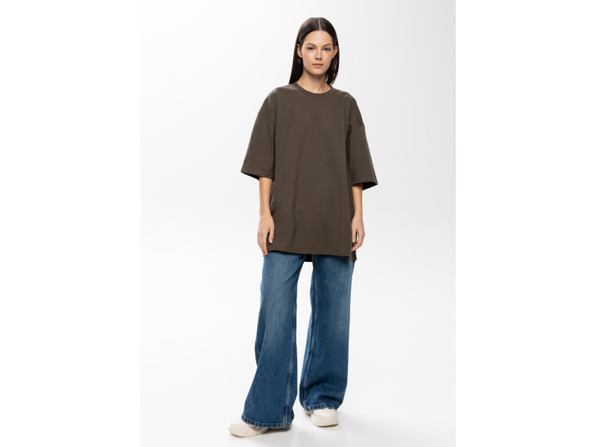 Универсальная футболка силуэта-оверсайз с округлым воротом и спущенной линией плеча.