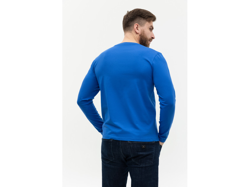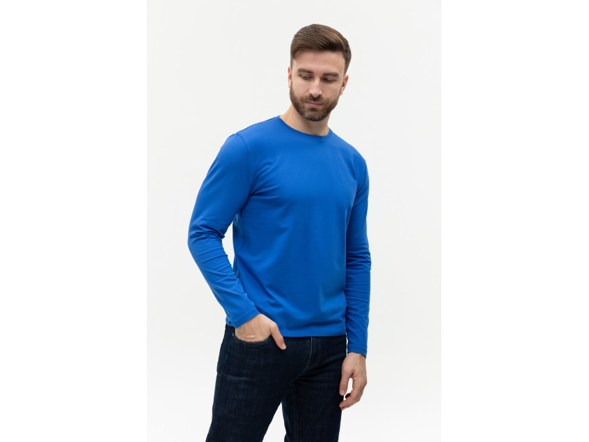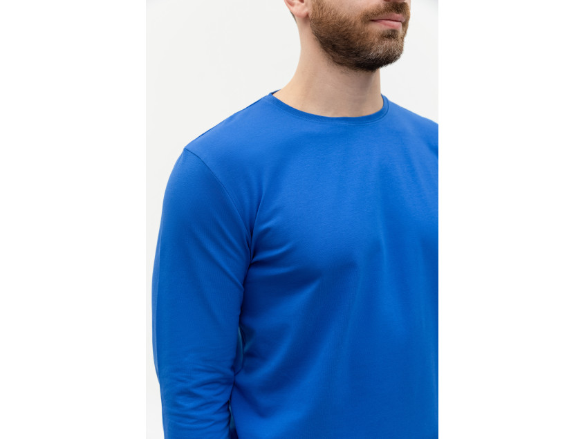 Универсальная футболка прямого силуэта с округлым воротом и длинным втачным рукавом. Плечевые швы и шов горловины усилены настрочной бейкой из основного полотна.