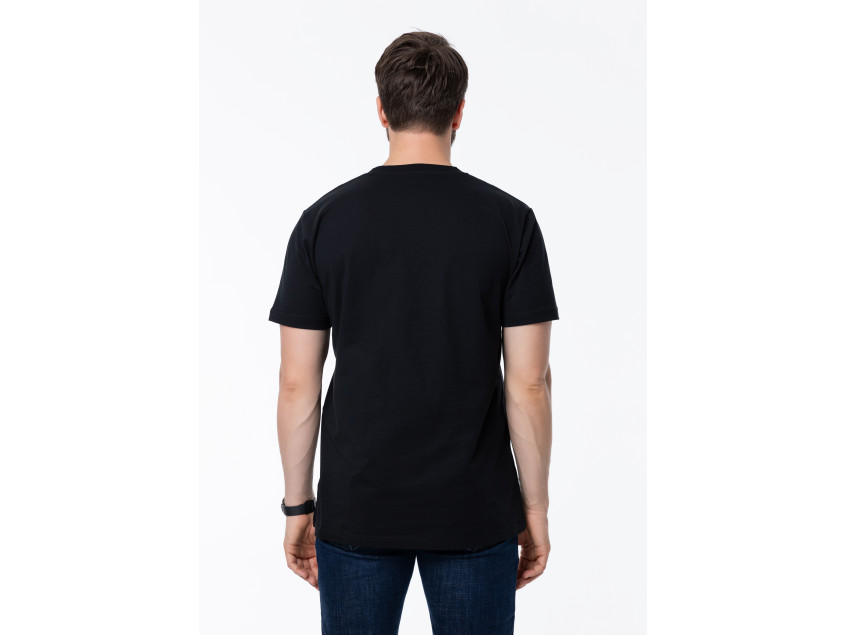 Футболка выполнена из мягкого и прочного полотна из 100% хлопка. Материал обладает отличными влагоотводящими и воздухопроницаемыми свойствами. Ткань легкая и приятная к телу.