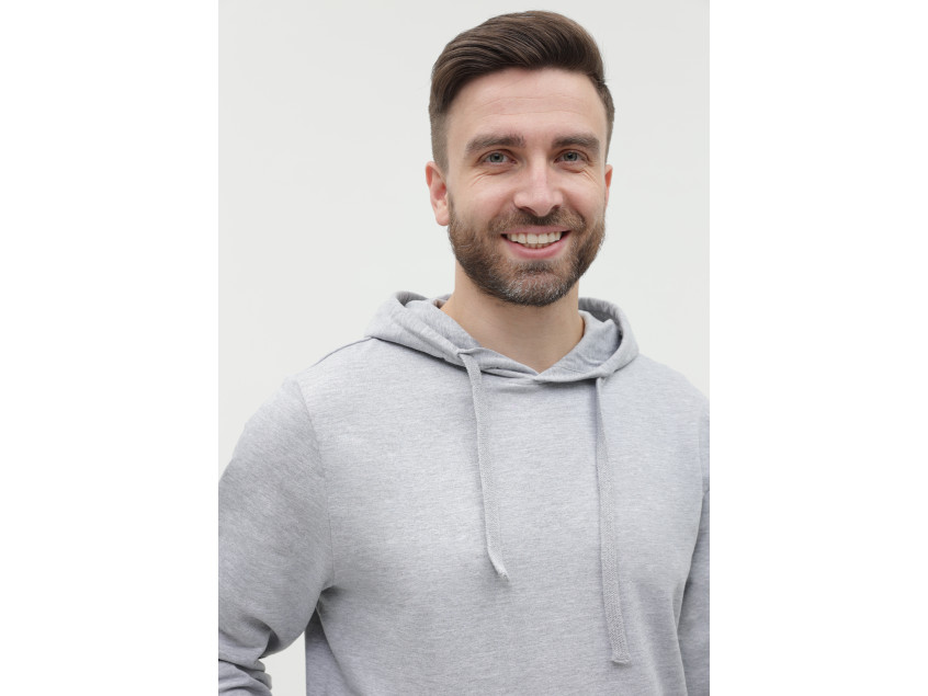 Толстовка без начеса выполнена из мягкого футера (100% хлопок), подклад – кулирная гладь (100% хлопок). Оба материала устойчивы к механическому воздействию и вытяжению, практически не поддаются пилингу.