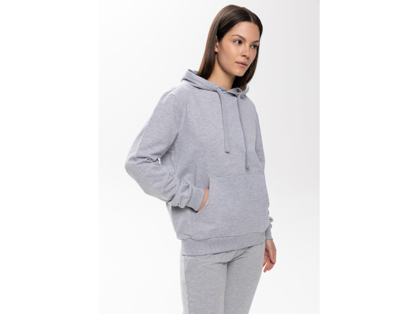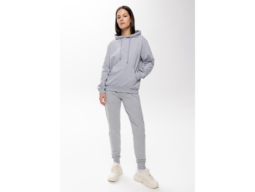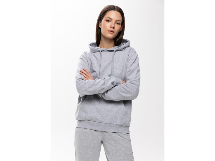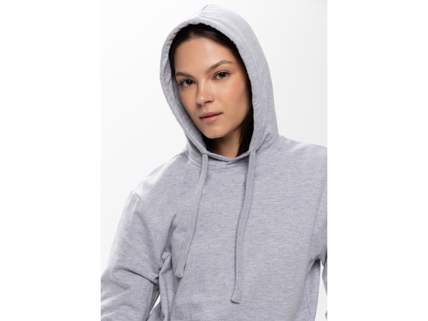 Толстовка прямого силуэта с капюшоном, втачным рукавом и карманом-кенгуру. Капюшон дополнен шнурком для регулирования прилегания, манжет и низ изделия оформлены широкой эластичной резинкой. Возможно два варианта исполнения: контрастные шнурок и бейка/шнурок и бейка в цвет толстовки.
