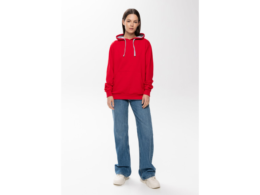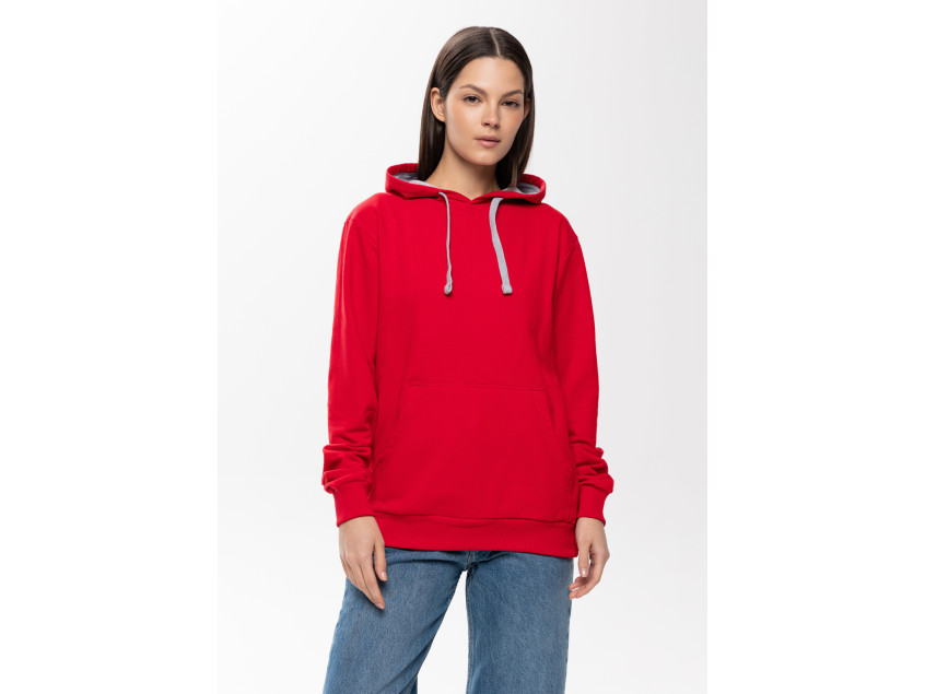 Худи унисекс STAN футер без начёса с контрастным капюшоном 260, 23, Красный