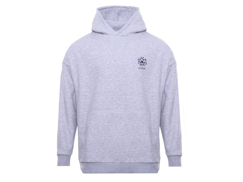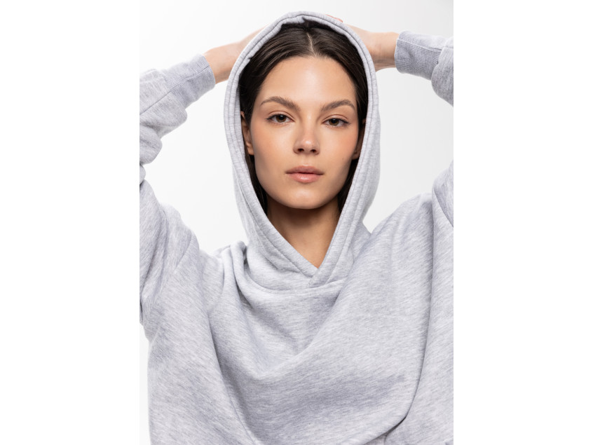 Толстовка свободного силуэта с капюшоном комфортной глубины, спущенной линией плеча и глубоким карманом-кенгуру. Манжет и низ изделия оформлены широкой эластичной резинкой в тон основному цвету.