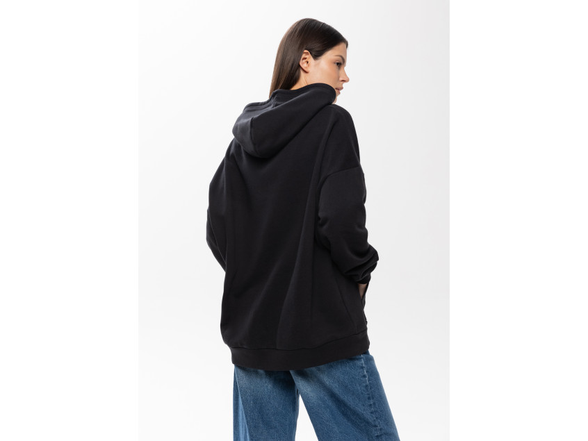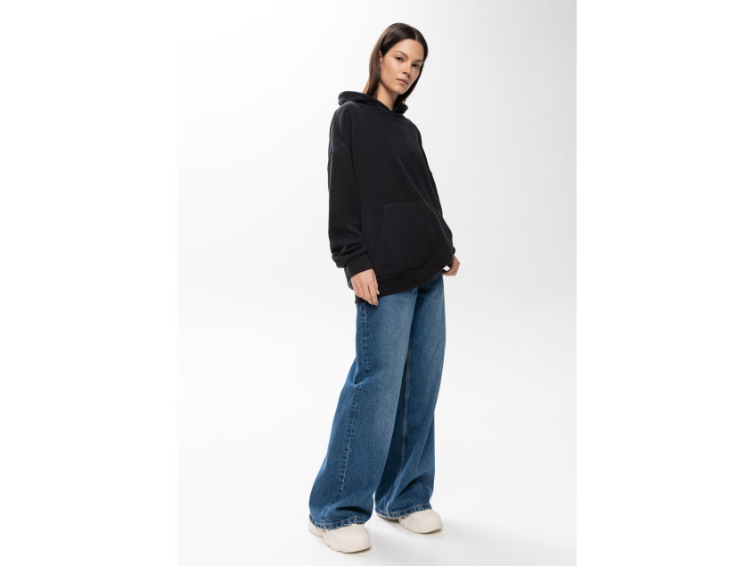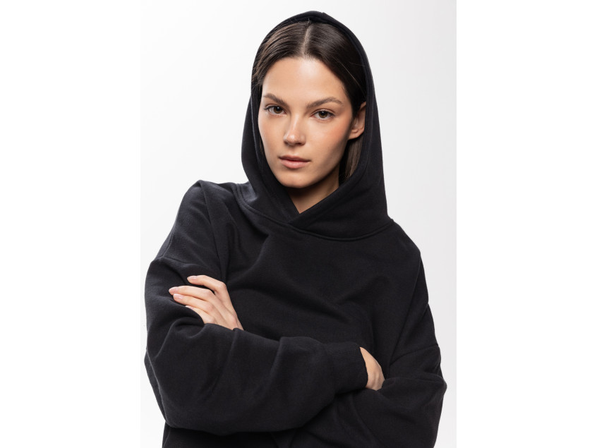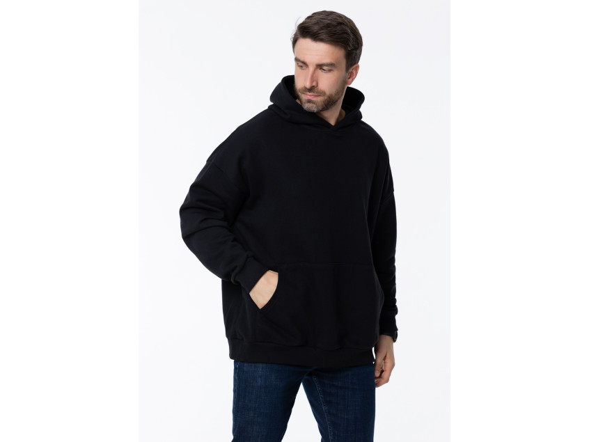 Универсальная толстовка свободного силуэта с капюшоном комфортной глубины, спущенной линией плеча и глубоким карманом-кенгуру. Манжет и низ изделия оформлены широкой эластичной резинкой.