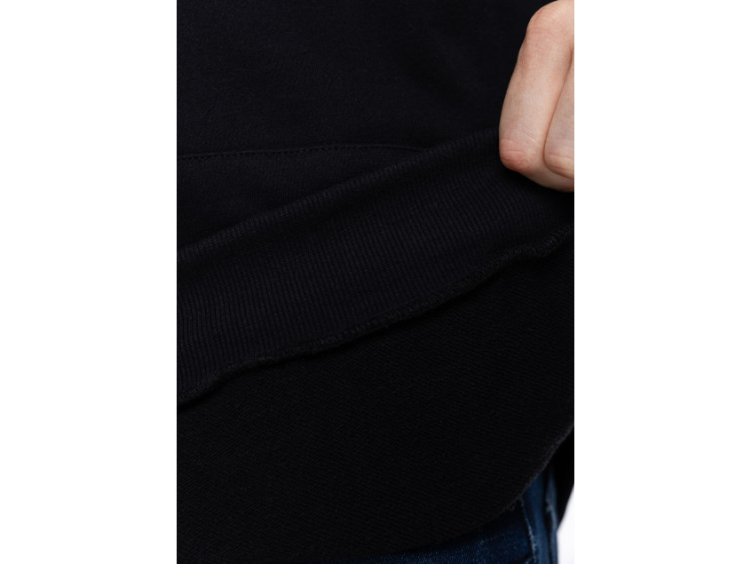 Модель выполнена из мягкого и приятного к телу футера (80% хлопок и 20% полиэстер). Плотный материал хорошо пропускает воздух и впитывает влагу. Благодаря добавлению синтетического волокна изделие обладает повышенной износостойкостью и эластичностью.