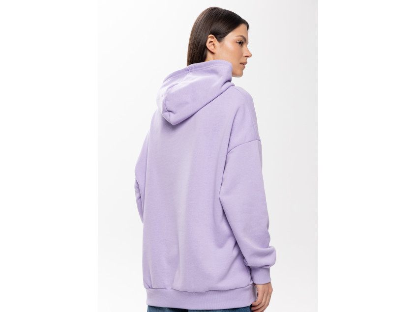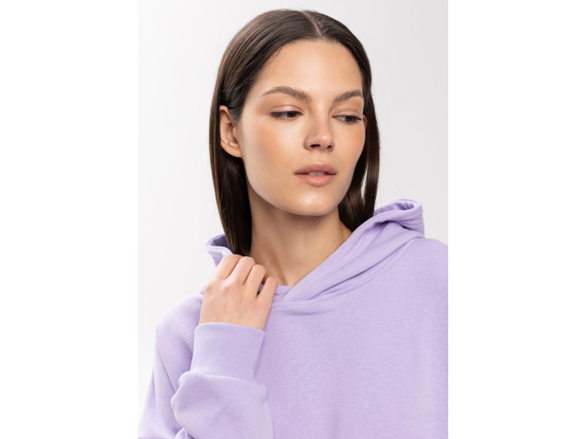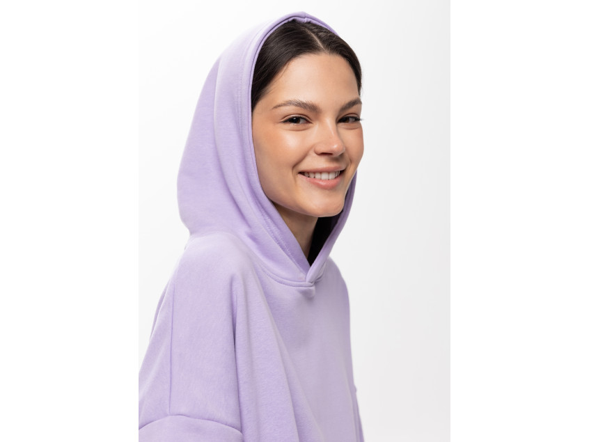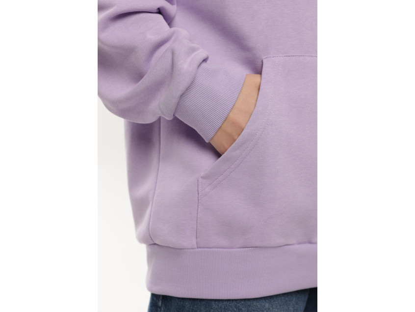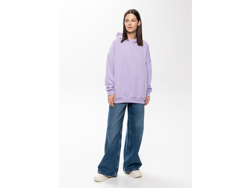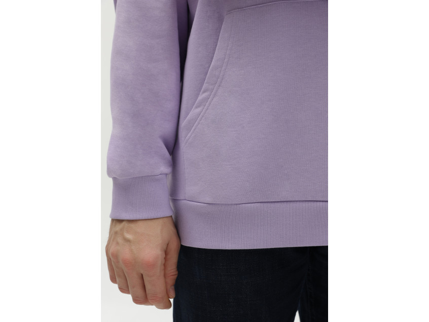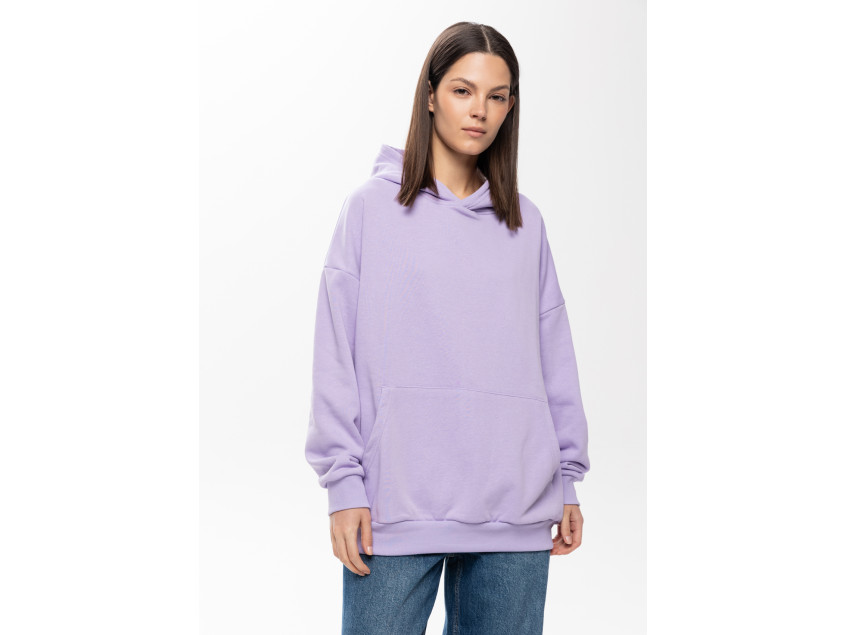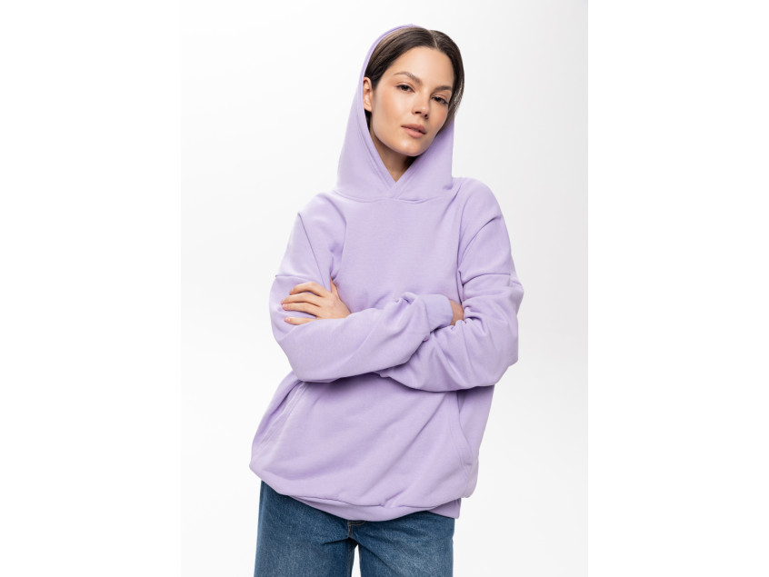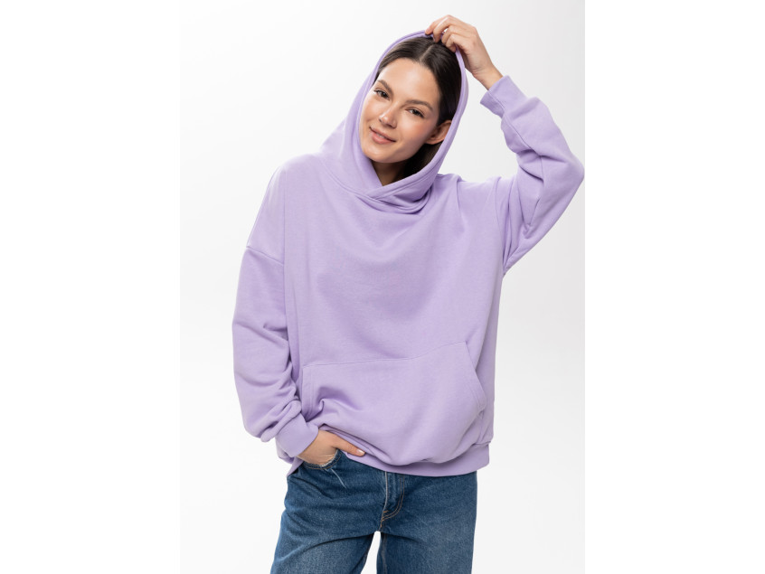 Универсальная толстовка свободного силуэта с капюшоном комфортной глубины, спущенной линией плеча и глубоким карманом-кенгуру. Манжет и низ изделия оформлены широкой эластичной резинкой.