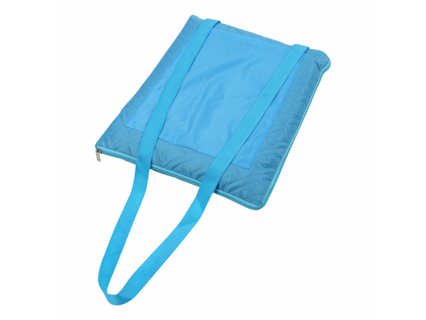 В разложенном виде размер пледа 115*145 см. В сложенном виде размер сумки 30*38 см, карман 22*31. Плед выполняет три функции: плед, сидушка и сумка. Плед трансформируется в удобную сумку, которую можно использовать в качестве сидушки. Карман подойдет для хранения мелочей и документов. Внутренняя сторона выполнена из мягкого флиса, внешняя из полиэстера с водоотталкивающим покрытием.