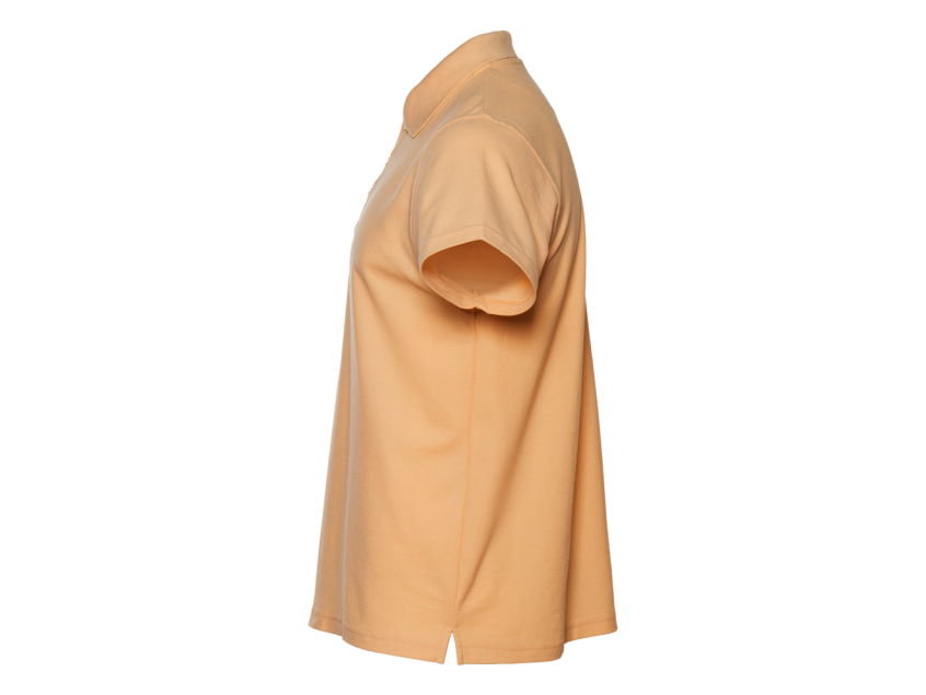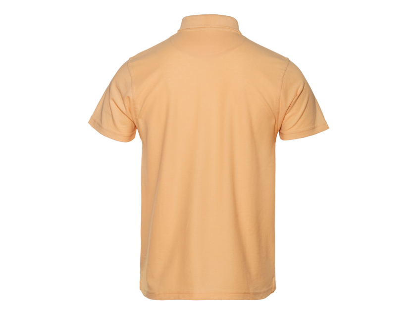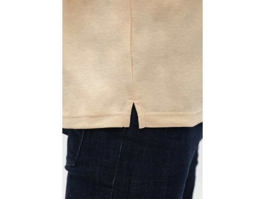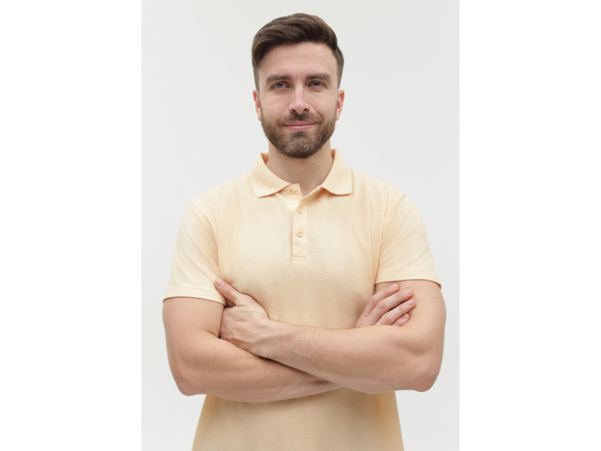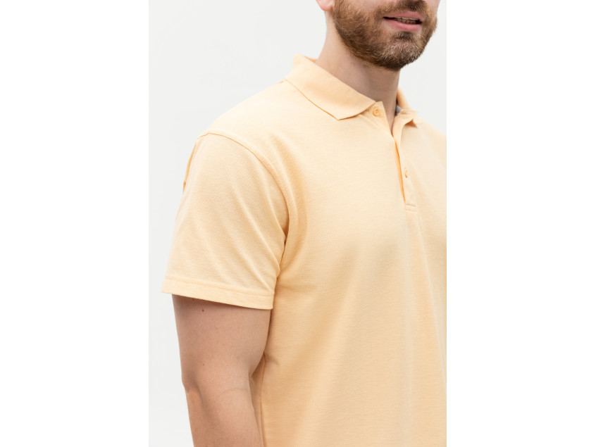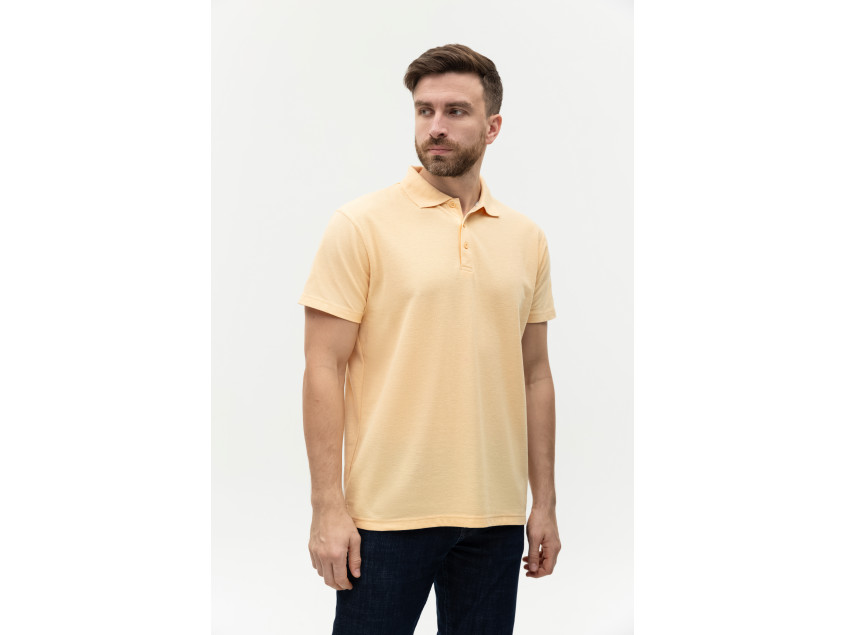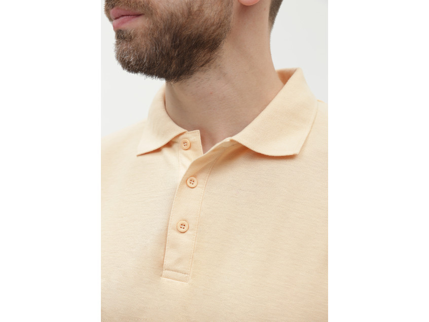 Поло выполнено из фактурной смесового ткани (65% хлопок, 35% полиэстер), благодаря чему изделие хорошо пропускает воздух и практически не мнется.