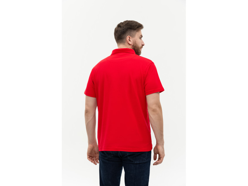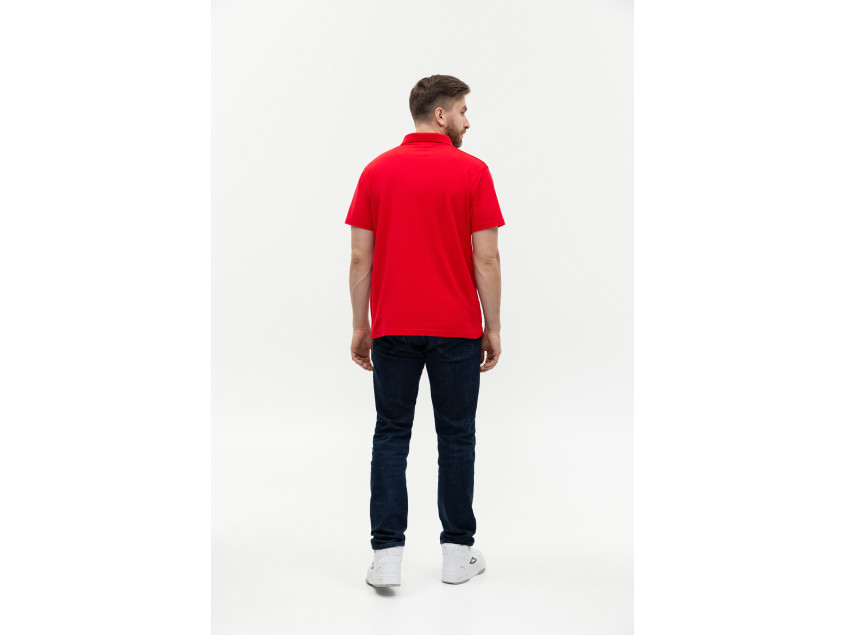 Поло выполнено из фактурной смесового ткани (65% хлопок, 35% полиэстер), благодаря чему изделие хорошо пропускает воздух и практически не мнется.