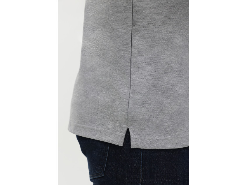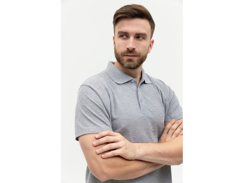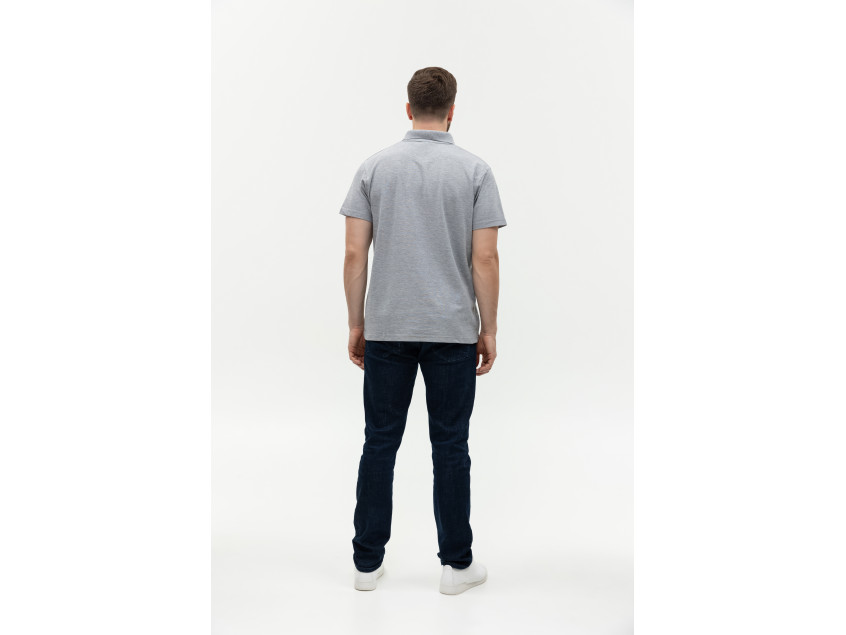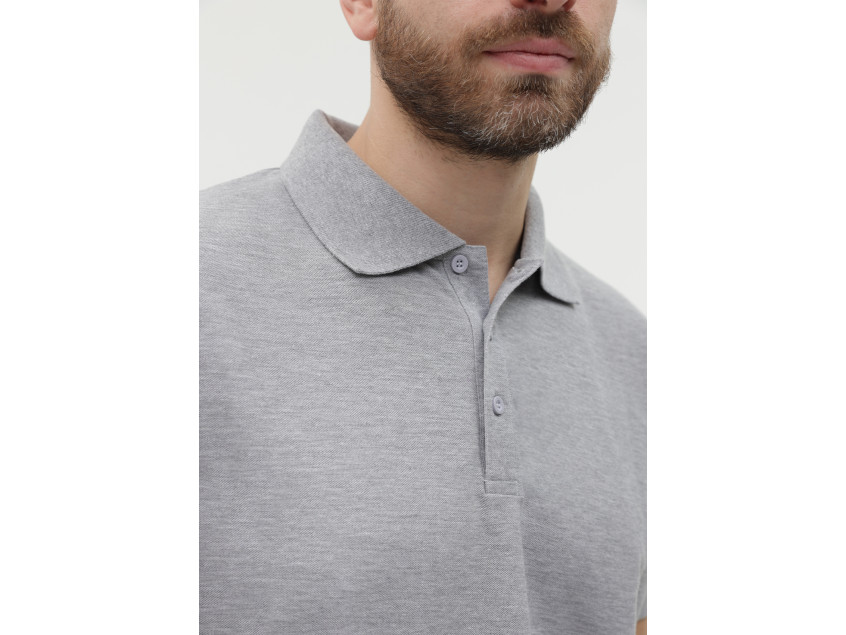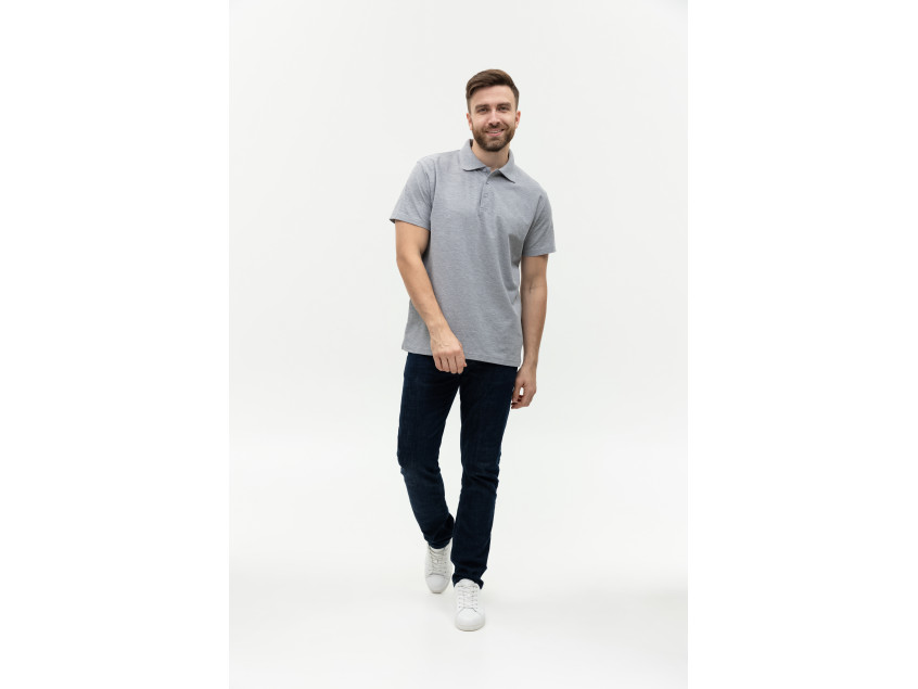 Поло выполнено из фактурной смесового ткани (65% хлопок, 35% полиэстер), благодаря чему изделие хорошо пропускает воздух и практически не мнется.