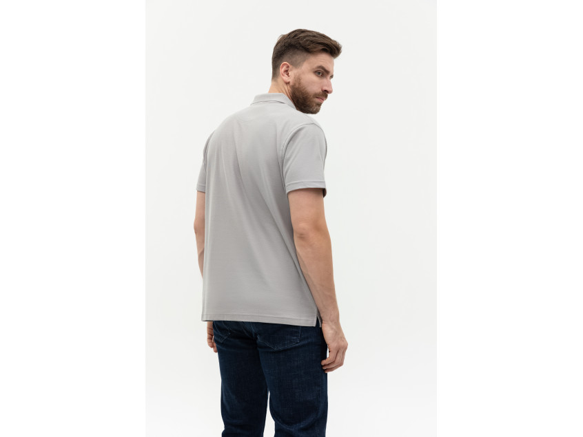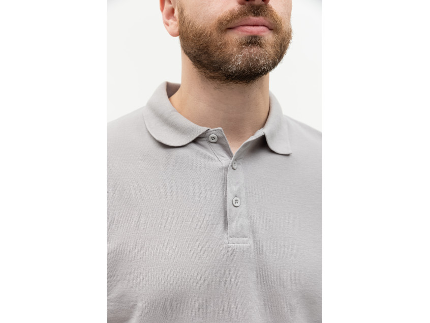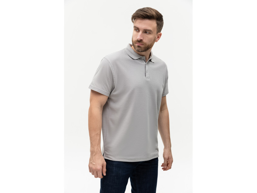 Поло выполнено из фактурной смесового ткани (65% хлопок, 35% полиэстер), благодаря чему изделие хорошо пропускает воздух и практически не мнется.
