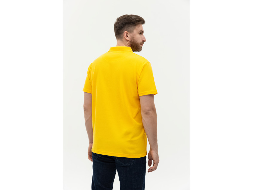 Поло выполнено из фактурной смесового ткани (65% хлопок, 35% полиэстер), благодаря чему изделие хорошо пропускает воздух и практически не мнется.