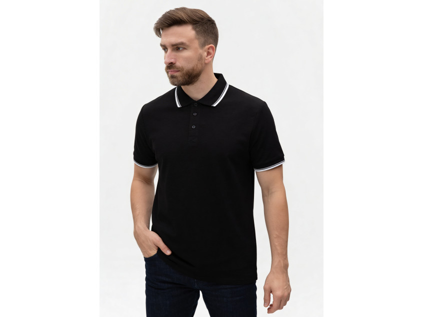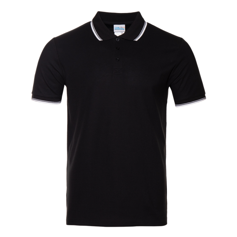 Рубашка поло унисекс STAN с окантовкой хлопок/полиэстер 185, 04T, Чёрный