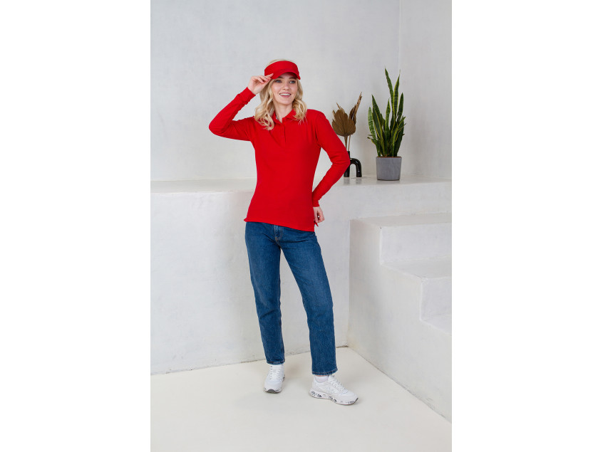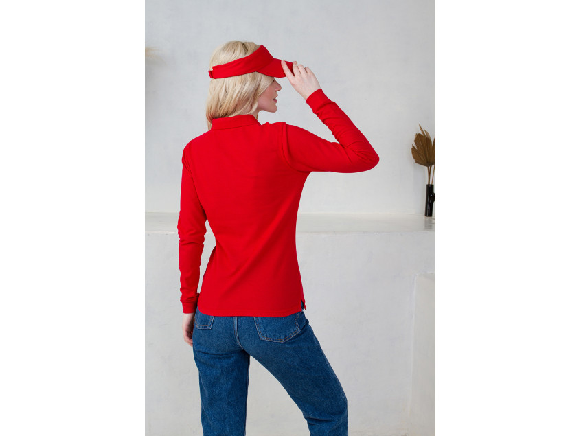 Женская рубашка поло приталенного силуэта с отложным воротником, длинным рукавом и застежкой на пуговицы.