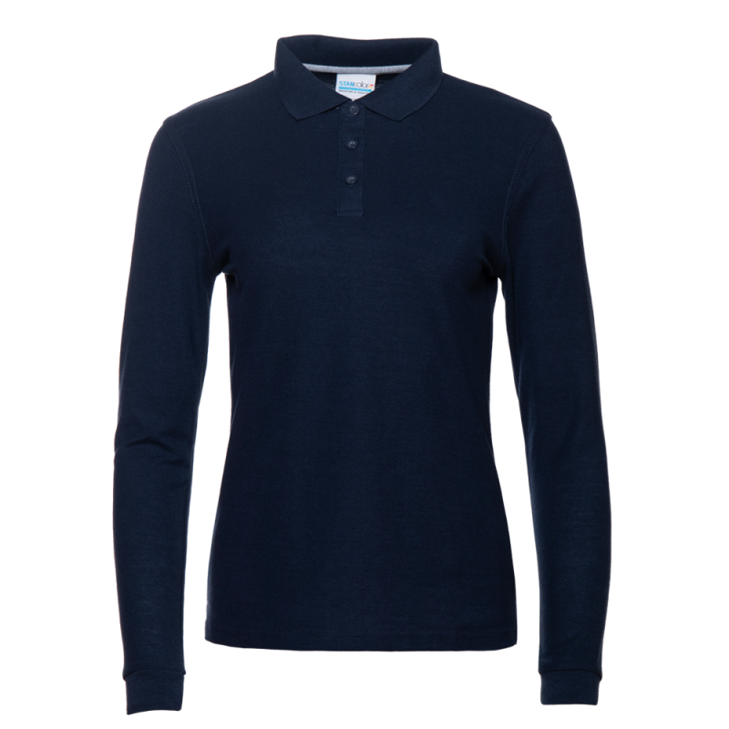 Рубашка поло женская STAN длинный рукав хлопок/полиэстер 185, 04SW, Тёмно-синий