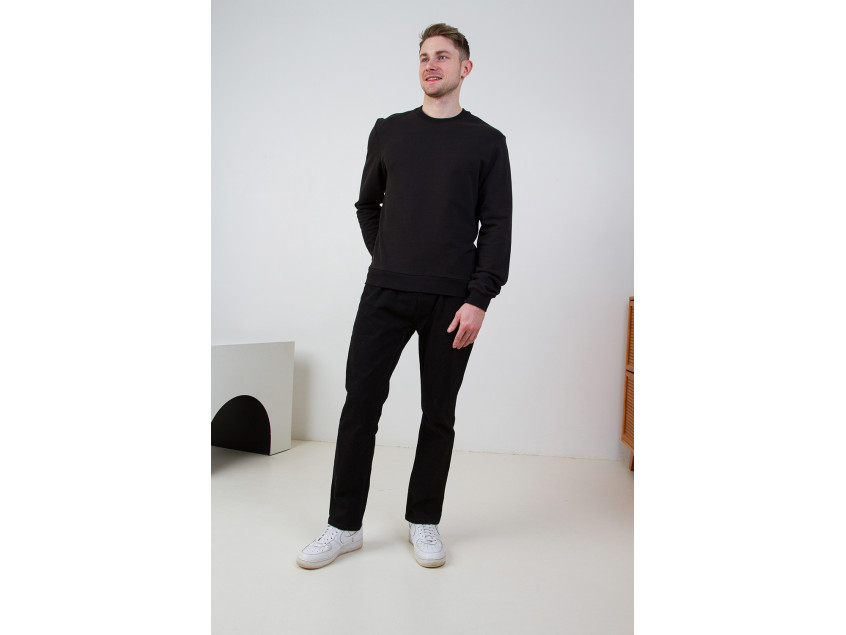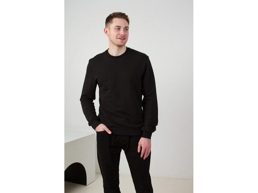 Модель свободного силуэта с округлым воротом и втачным рукавом. Ворот, манжет и низ изделия оформлены эластичной бейкой в тон основному цвету. Модель подойдет как для мужского, так и для женского гардероба.