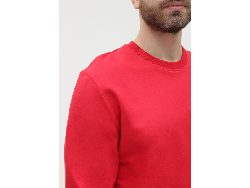 Свитшот выполнен из мягкого и плотного хлопкового футера. Изделие приятное к телу, хорошо пропускает воздух и быстро отводит влагу, не теряет форму со временем.