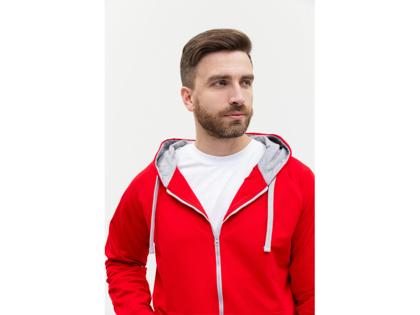 Толстовка мужская STAN с капюшоном на молнии футер без начёса 260, 61, Красный