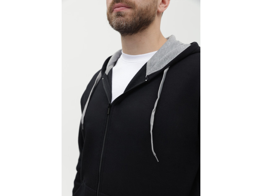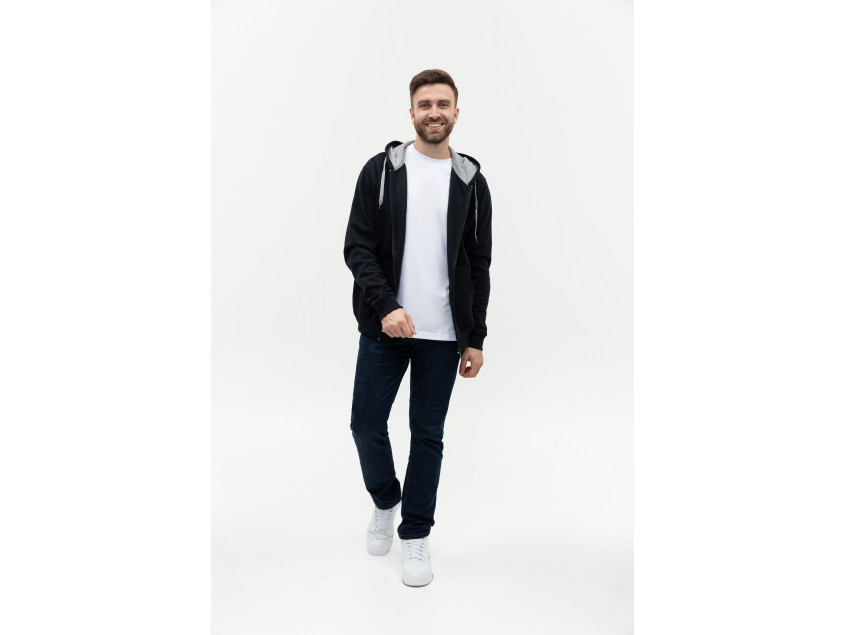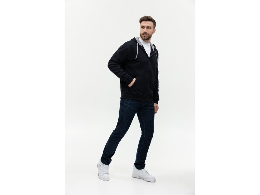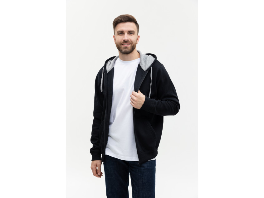 Толстовка мужская STAN с капюшоном на молнии футер с начёсом 280, 17, Чёрный