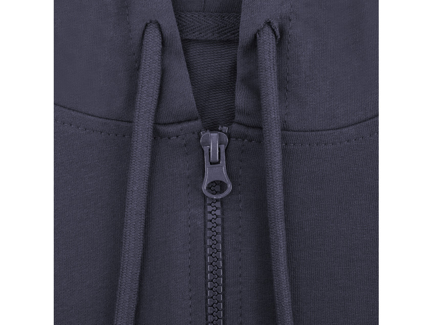 Толстовка оверсайз-силуэта с глубоким капюшоном, спущенной линией плеча, карманом-кенгуру и застежкой на молнию. Глубина капюшона регулируется шнурком с пластиковым наконечником, а рукав и низ изделия дополнены плотной эластичной резинкой.
