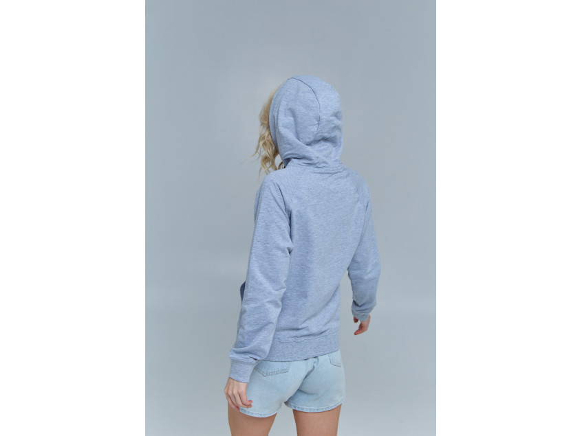 Женская олимпийка прямого силуэта с капюшоном комфортной глубины, рукавом-реглан, накладным карманом и застежкой на контрастную молнию. Капюшон дополнен шнурком для регулирования прилегания, манжет и низ изделия оформлены широкой эластичной резинкой.