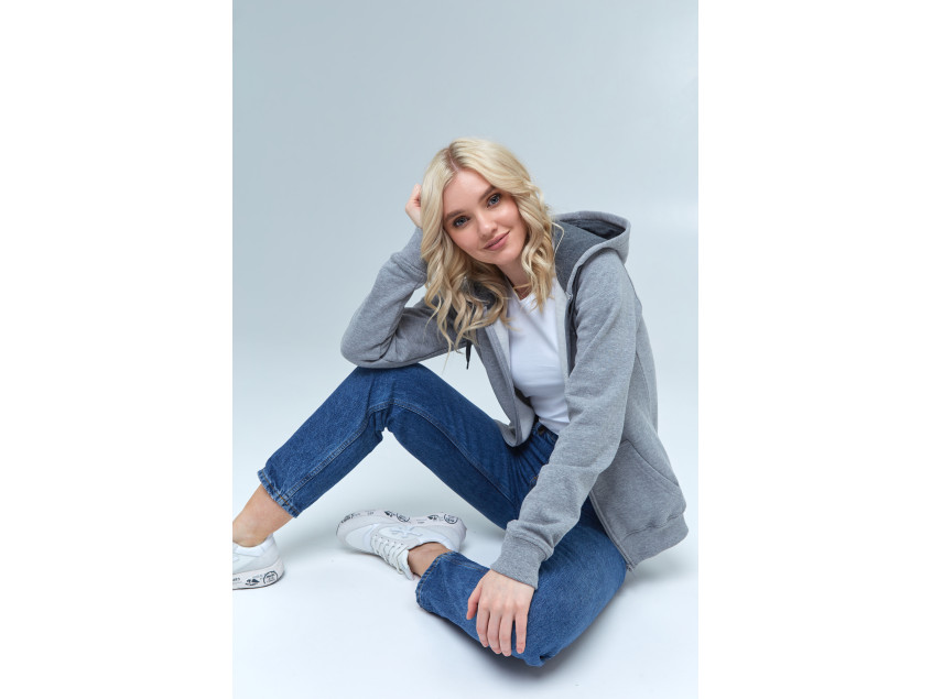 Толстовка женская STAN с капюшоном на молнии футер с начёсом 280, 17W, Серый меланж