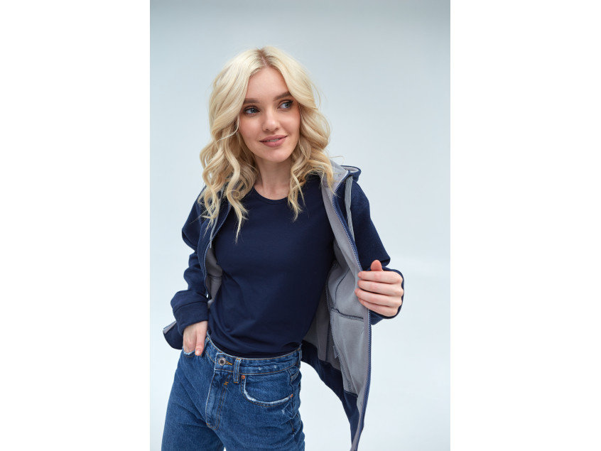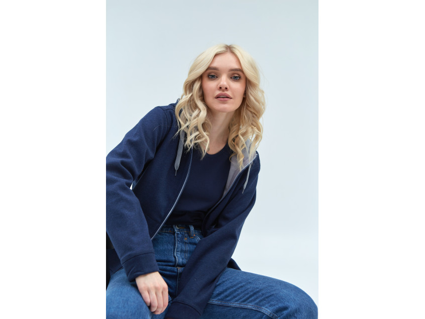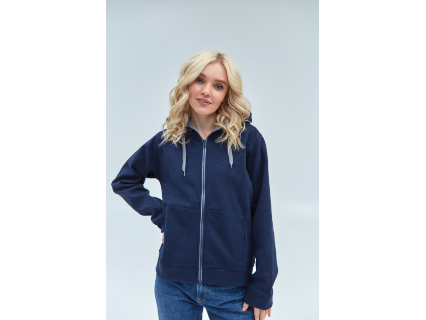 Толстовка женская STAN с капюшоном на молнии сэндвич 320, 19, Тёмно-синий меланж