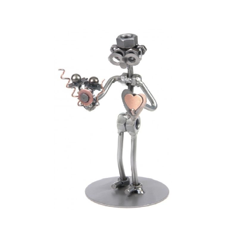 Фигурка из металла "Дамский угодник" — оригинальное и забавное украшение, которое добавит юмора и необычности в ваш интерьер.Фигурка ручной работы - талантливого дизайнера из Германии. Нет такой области в жизни, что не вдохновила бы его на создание очередной металлической фигурки причудливой формы, отличительной особенностью которой является использование таких предметов, как болты, гайки, проволока, различные пластины и т. п. Необыкновенный стиль, который можно трактовать как Modern, Hi-Tech или даже Steampunk, сделали фигурки популярными во всём мире.Эта фигурка отлично подойдет для любителей нестандартных аксессуаров и станет ярким подарком для тех, кто ценит юмор и оригинальность. Добавьте немного веселья и креатива в ваш дом или офис с помощью этой уникальной металлической фигурки!