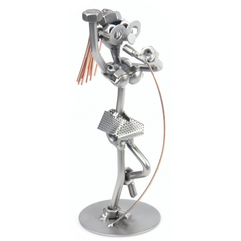 Металлические фигурки — ручная работа талантливого дизайнера из Германии. Нет такой области в жизни, что не вдохновила бы его на создание очередной металлической фигурки причудливой формы, отличительной особенностью которой является использование таких предметов, как болты, гайки, проволока, различные пластины и т. п. Необыкновенный стиль, который можно трактовать как Modern, Hi-Tech или даже Steampunk, сделали фигурки популярными во всём мире. Фигурка "Волшебный голос" станет прекрасным и стильным подарком человеку творческому, человеку, который любит петь.