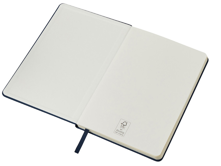 В блокноте 192 страницы кремовой бумаги 70 г/м2 с сертификатом ответственного лесопользования FSC.