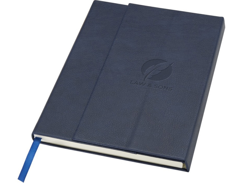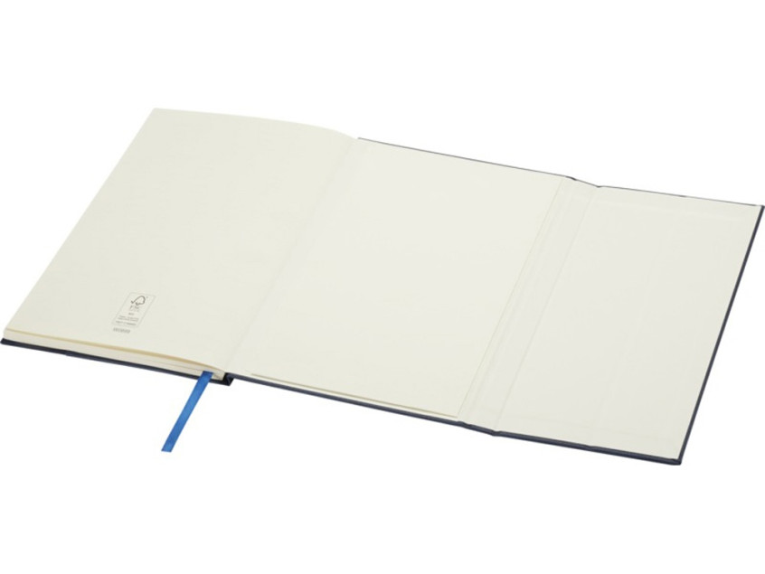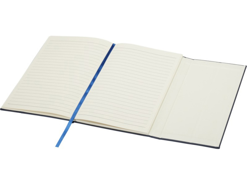 Блокнот Alejandra формата A5 в твердой обложке изготовлен из переработанного полимерного и PET-пластика с 80 линованными листами кремовой бумаги плотностью 70 г/м², а также оснащен ленточкой-закладкой и карманом-гармошкой.