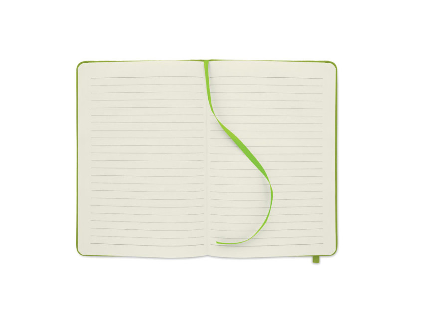 Блокнот A5 с обложкой из RPET 600D. Блок на 80 линованных страниц из переработанной бумаги с резинкой и закладкой. FSC®-certified | FSC MIX CREDIT, P7.1, FSC-C213206