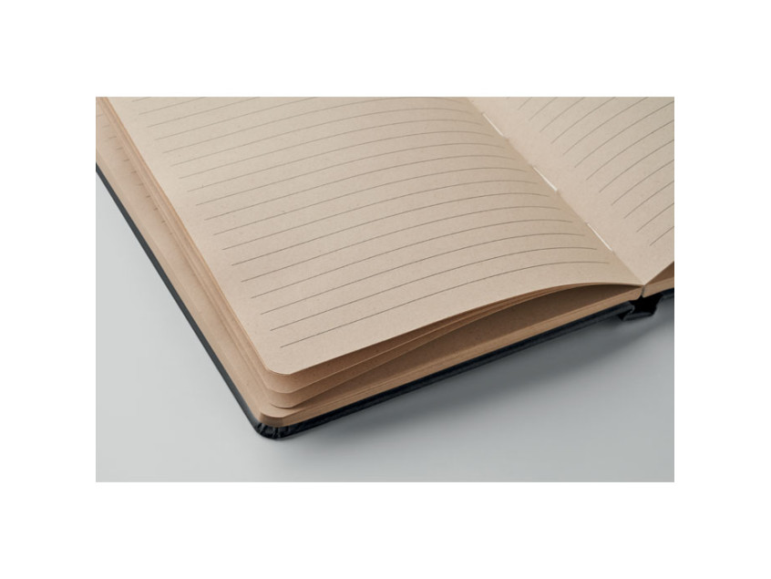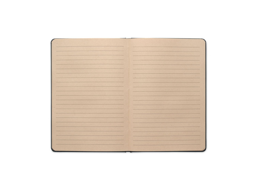 A5 notebook with hard cover and 160 lined paper pages (80 sheets) in PLA sugarcane (65% Sugarcane fibre/35% paper). Casebound.