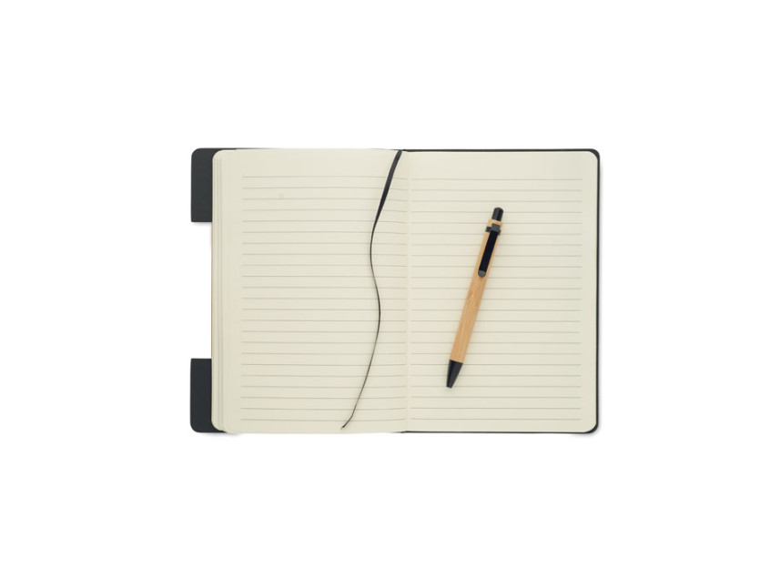 Твердая обложка из переработанного материала RPET придает блокноту не только прочность, но и подчеркивает вашу заботу о природе. Черный цвет обложки — это классика, которая никогда не выходит из моды. Она добавляет солидности и стиля, делая блокнот универсальным аксессуаром для любого случая.