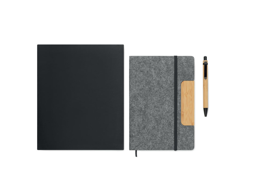 Твердая обложка из экологичного материала RPET не только защищает ваши записи, но и демонстрирует заботу о природе. Внутри вас ждут 160 линованных страниц из переработанной бумаги — каждая из них готова стать местом для ваших идей, планов или вдохновляющих заметок. Эластичный ремешок надежно фиксирует блокнот, а закладка-лента поможет быстро найти нужную страницу. Но это еще не все! В комплекте идет бамбуковая шариковая ручка с синими чернилами — стильный аксессуар, который подчеркнет ваш статус и внимание к деталям.