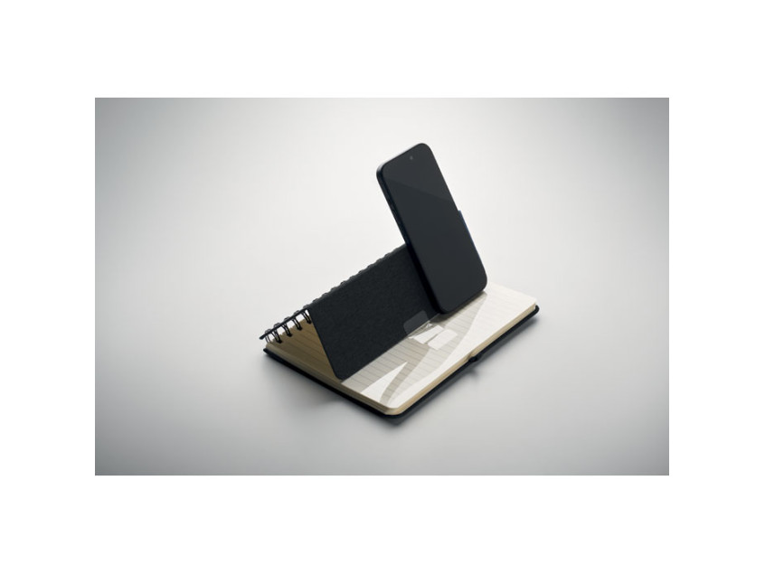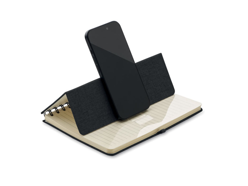 Блокнот А5 KM2522-03 — это не просто аксессуар для записей, а настоящий стильный спутник для тех, кто ценит функциональность и эстетику. Представьте, как приятно держать в руках блокнот, который не только помогает организовать мысли, но и становится частью вашего уникального образа. Его черная обложка из прочного материала 600D RPET выглядит одновременно сдержанно и роскошно, словно кожаный аксессуар премиум-класса. А благодаря функции подставки для смартфона, он превращается в незаменимого помощника на встречах, в кафе или во время путешествий.